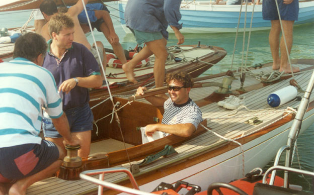 Peter Brookes discusses the days racing from the cockpit while rafted up with other class vessels
