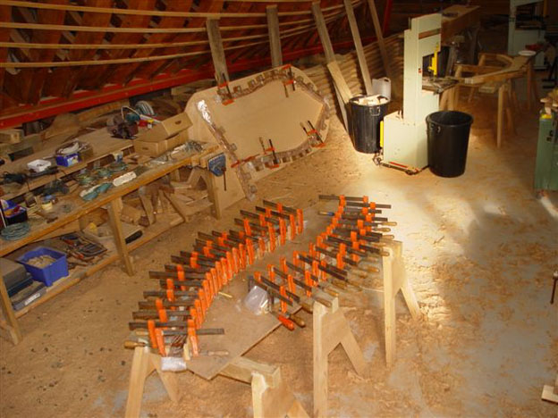 Laminating Kauri frames for the bow