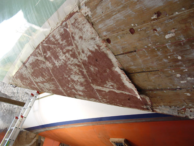 Fibreglass patch covering break in stem being removed