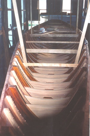 In this picture the copper riveted steamed frames and new wooden floors are shown