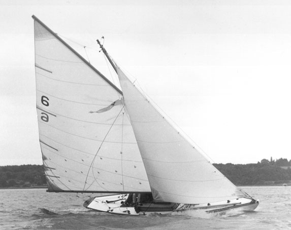 At the end of a race. Close hauled with a bit between her teeth and flying the winners penant